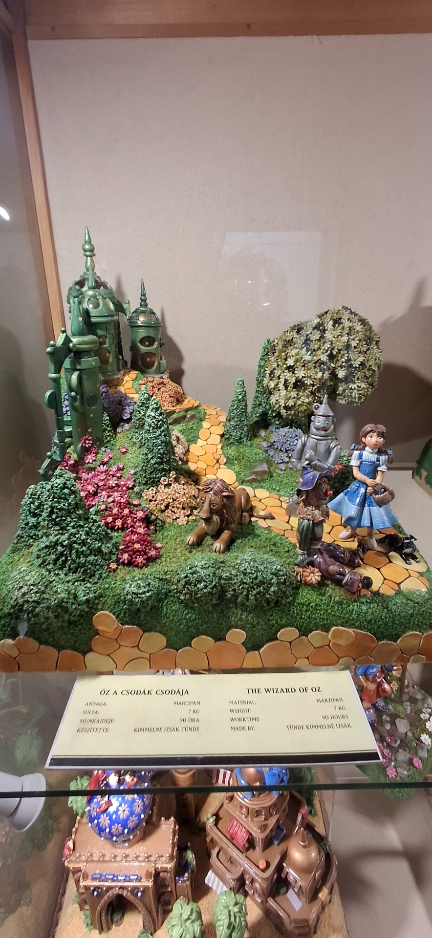 Az üzlettől tovább haladva található a kiállítás, ahol különböző rajzfilmfigurák, történelmi személyek, uralkodók csokoládé- és marcipánfigura-másait lehet megnézni. A vitrinekben és tematikus sarkokban egymás mellett sorakoznak a jól ismert mesék és a történelem ikonikus alakjai, így minden korosztály talál magának kedvencet. A gyerekek számára igazi élményt jelentenek a klasszikus rajzfilmhősök, mint például Tom és Jerry, a három kismalac, vagy Piroska és a farkas, míg a felnőttek számára különleges élmény a magyar történelem nagy alakjainak megformálása, mint Mátyás király vagy Kossuth Lajos. A kiállítás különlegességei közé tartozik egy nagyméretű Michael Jackson marcipánfigura is, amely 62 kg, illetve egy Diana hercegnőt ábrázoló figura, amely 55 kg súlyú, és részletgazdag kidolgozásával azonnal magára vonja a tekintetet. A látogatók számára szinte felfoghatatlan, hogy ezekbe a művekbe hány óra, hány nap, sőt sokszor hány hét aprólékos munka van belefektetve, a tervezéstől a formázáson át a legapróbb díszítőelemek felhelyezéséig. A kiállítás mellett lehetőség van csokoládékészítésre is, azoknak, akik igazán édesszájúak és kíváncsiak az elkészítés folyamatára: a résztvevők megismerhetik a kakaóbab útját a táblás csokoládéig, kipróbálhatják a temperálást, saját díszítést készíthetnek, és a végén természetesen a saját kezűleg alkotott finomságokat is hazavihetik.