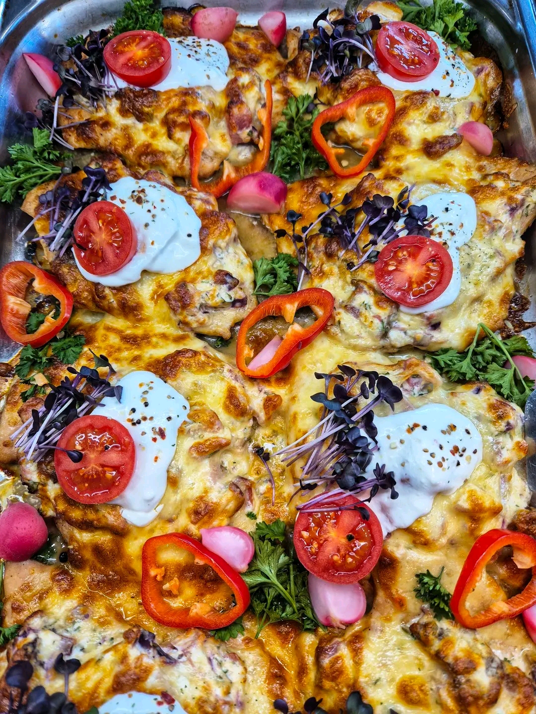 Sült csirkemellek – többféle ízben, gyakran sajttal megszórva, rásütve, különböző fűszerezéssel és köretekkel tálalva. A könnyed, mégis laktató fogás a kínálat egyik állandó és legnépszerűbb eleme, amelyet sokan kifejezetten ezért választanak.